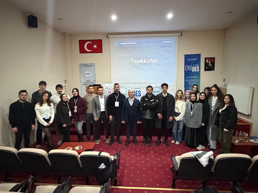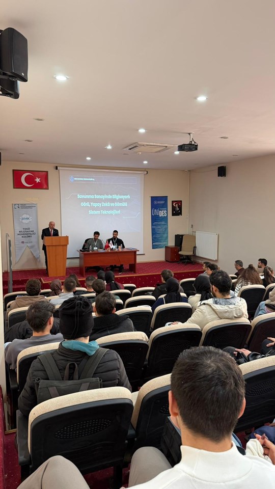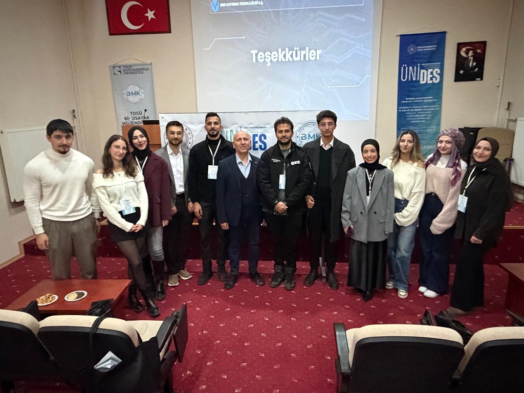 ÜNİDES 5. Dönem kapsamında, TOGÜ Bilgisayar Mühendisliği Kulübü tarafından düzenlenen; savunma sanayiinde bilgisayarlı görü, yapay zekâ ve gömülü sistemler temalı konferans düzenlendi. BMS Savunma Teknolojileri A.Ş.’den değerli konuşmacılar Barış Mert Kadıoğlu ve Ahmet Şentosun, gençlerimizle kıymetli bilgi ve tecrübelerini paylaştı.Katkıları için değerli konuşmacılarımıza, emekleri için kulüp yönetimine ve ilgi gösteren tüm gençlerimize teşekkür ederiz.